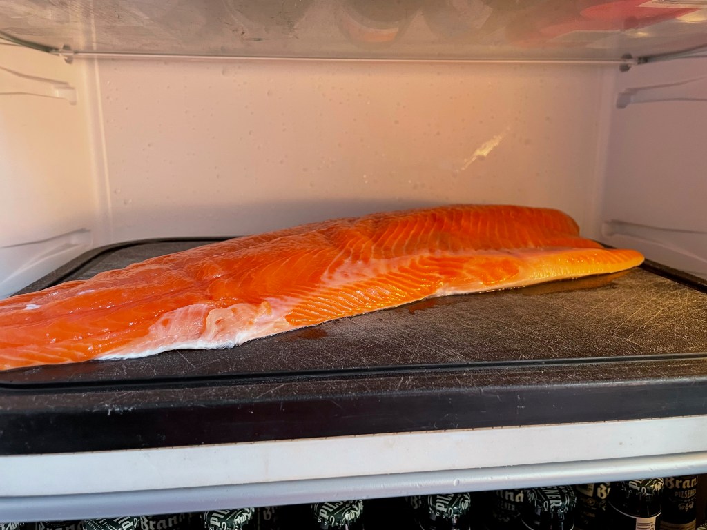 After that, I removed the salmon from the brine and let it dry out in the fridge for at least 24 hours.