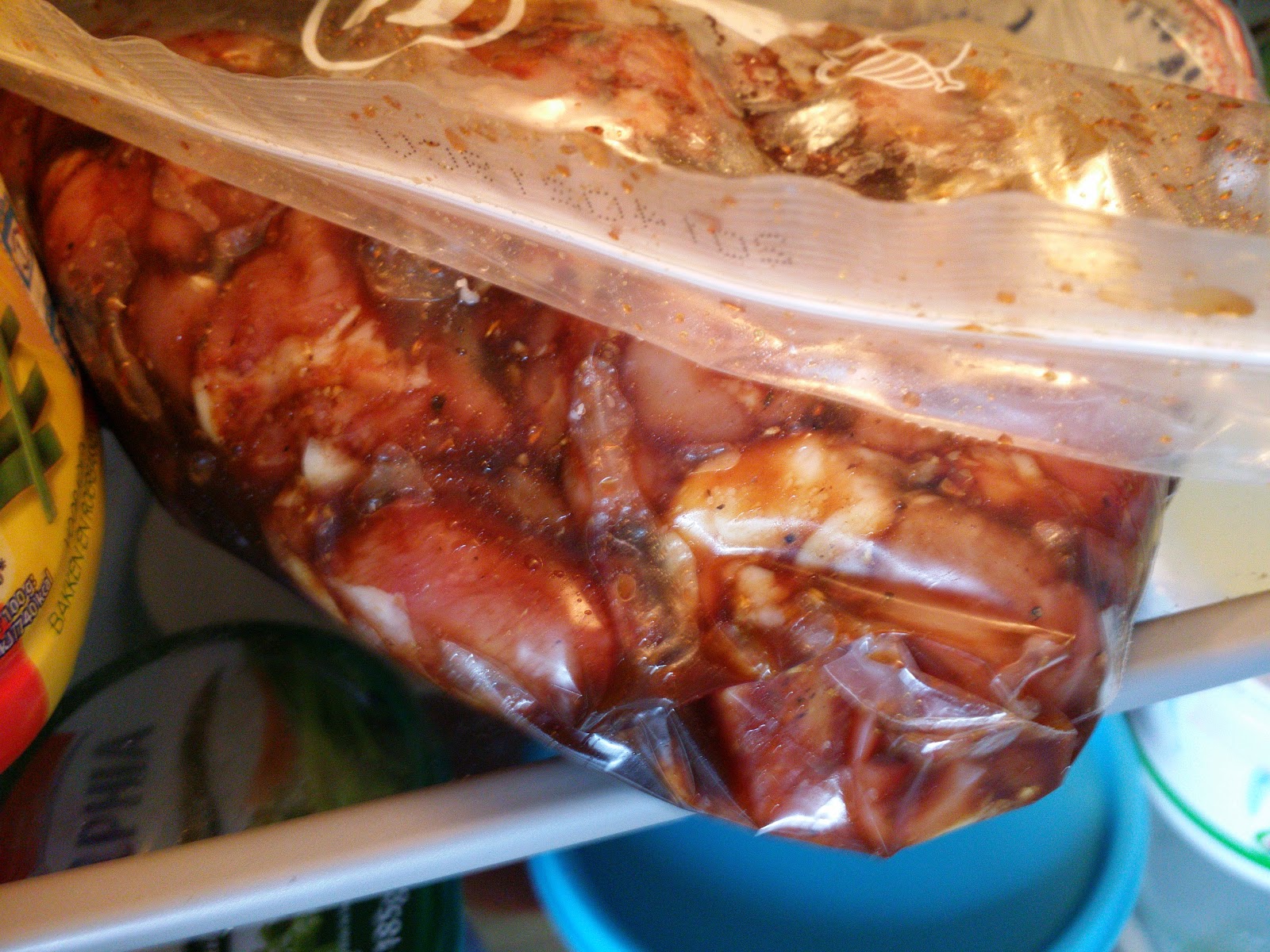 We put it all in a zip-lock back and let it rest in the fridge for 6 hours. (24 hours would be better, but then we should have planned better….).