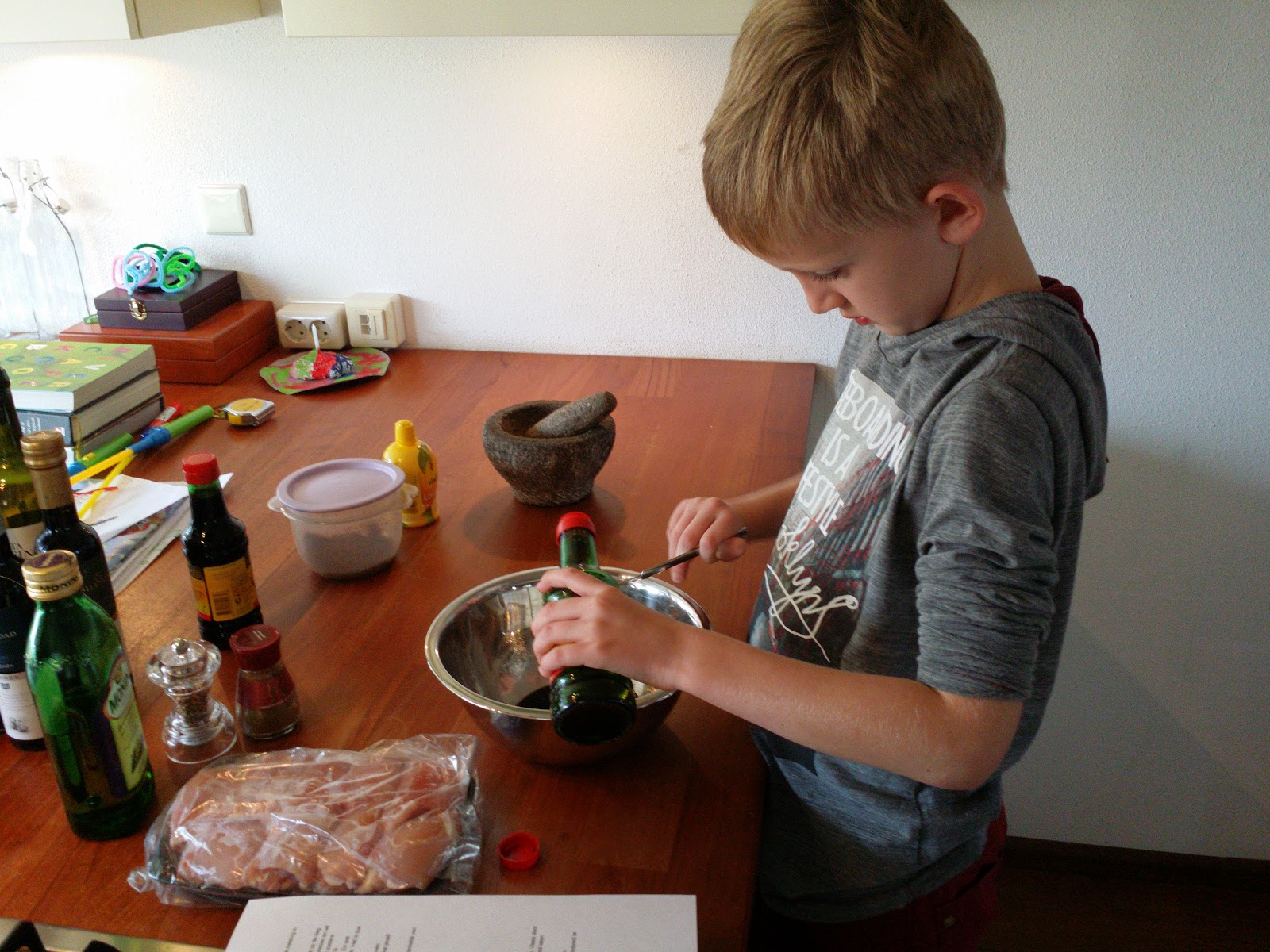 Again, a good weekend, but no large pieces of cow or pork this Sunday. I wanted to make something more simple. Also a good way of letting my son do most of the work, as he really likes doing something with the grill himself. Must be the age and the gene pool he’s made of.