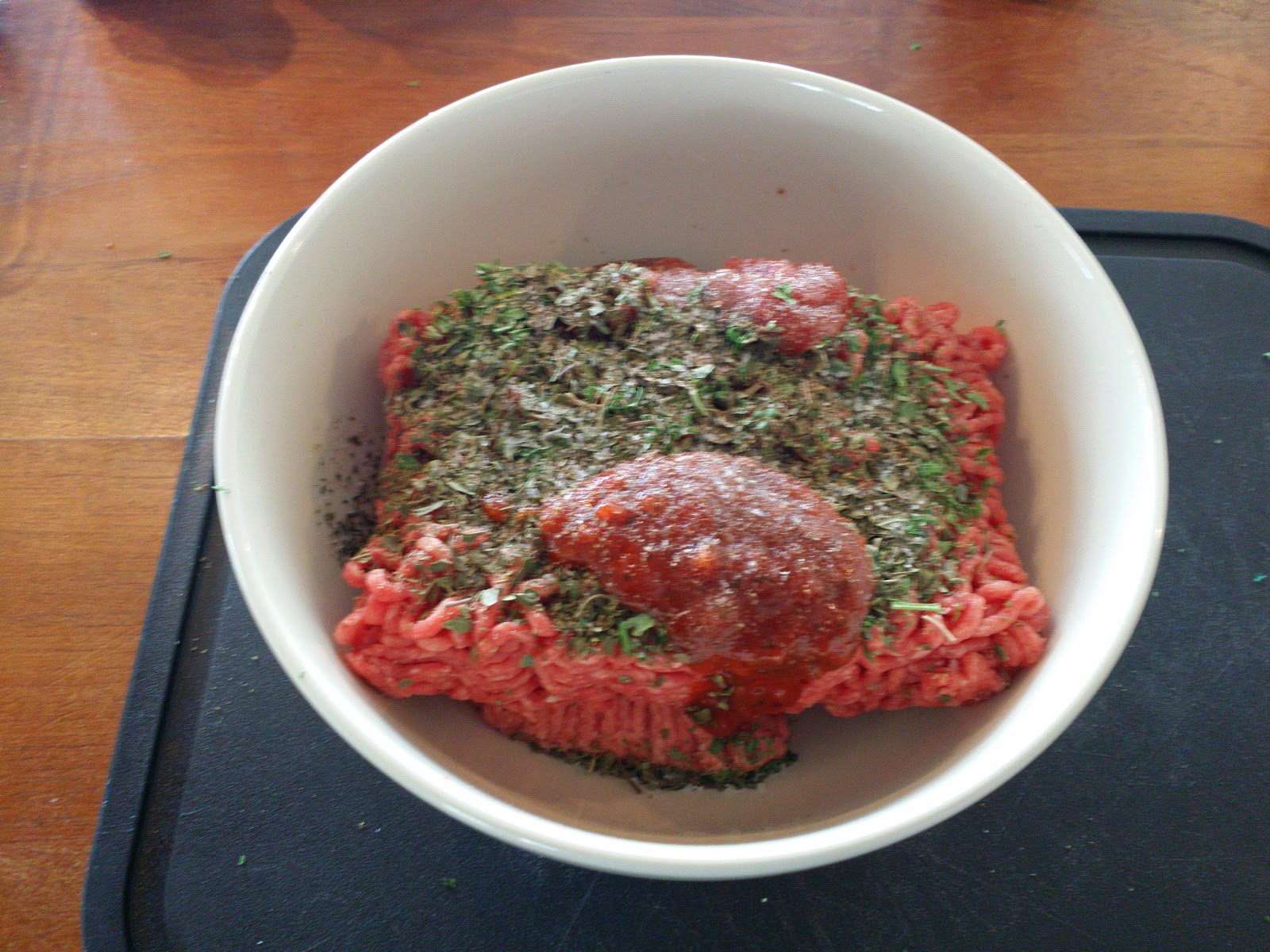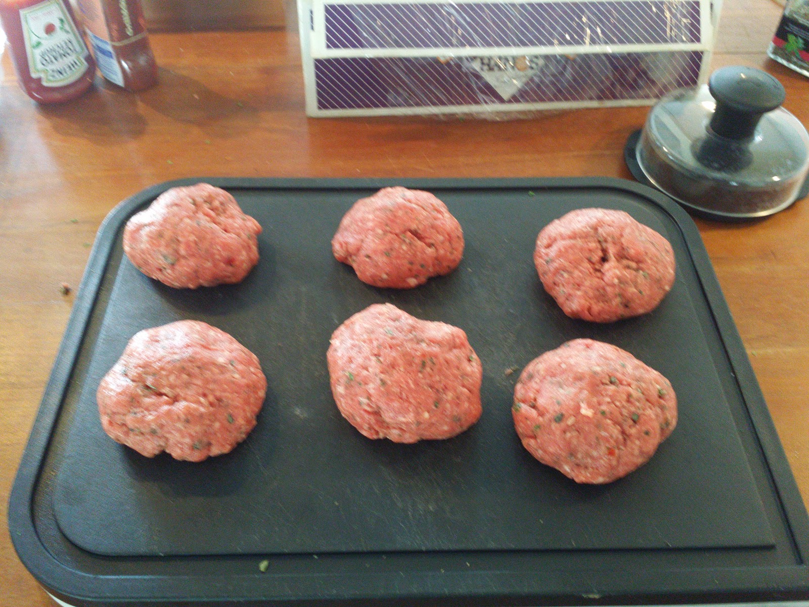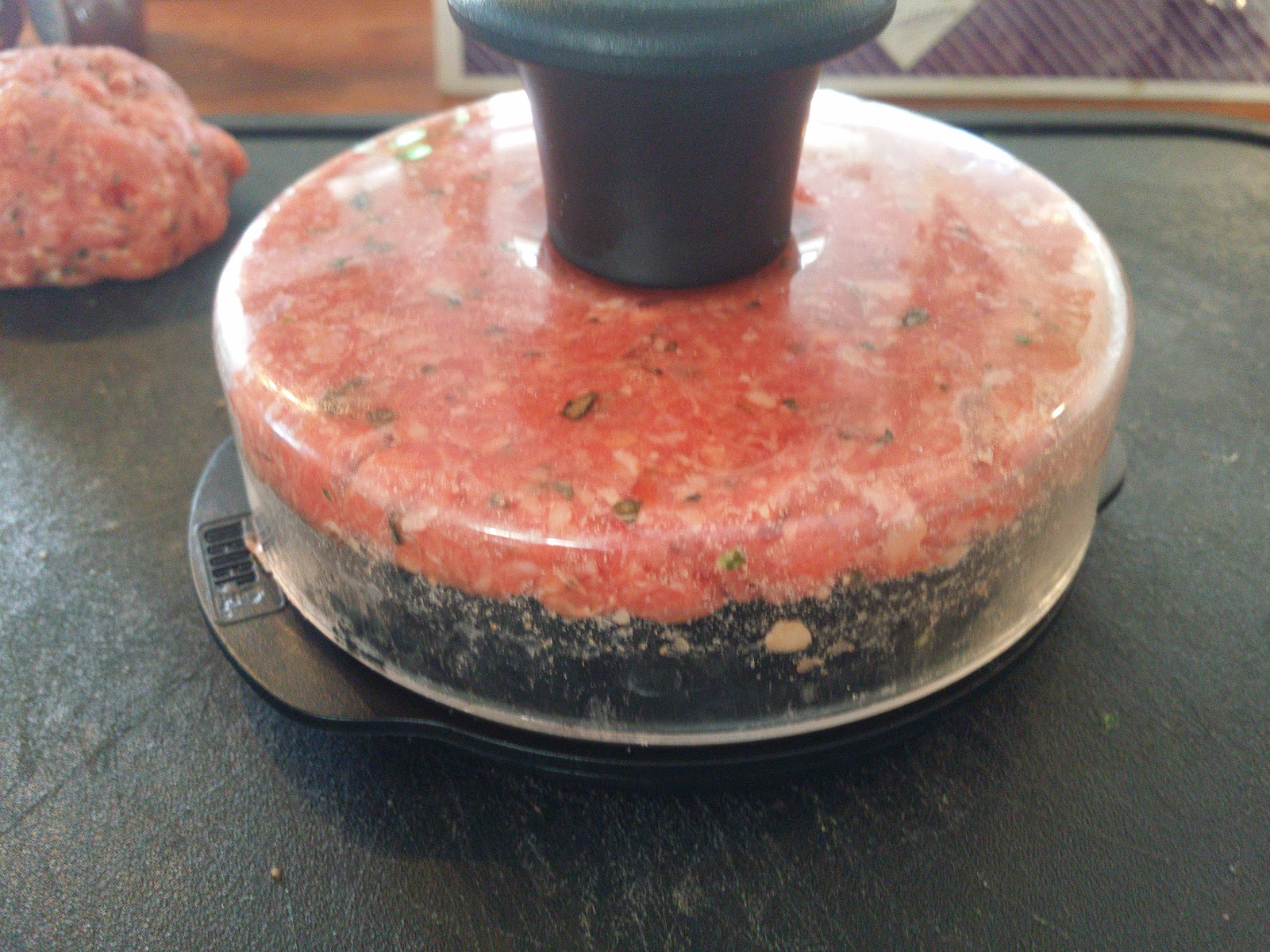 I mixed this all up to a nice soft substance that I could form quite nicely in my Weber burger press. Love that thing!