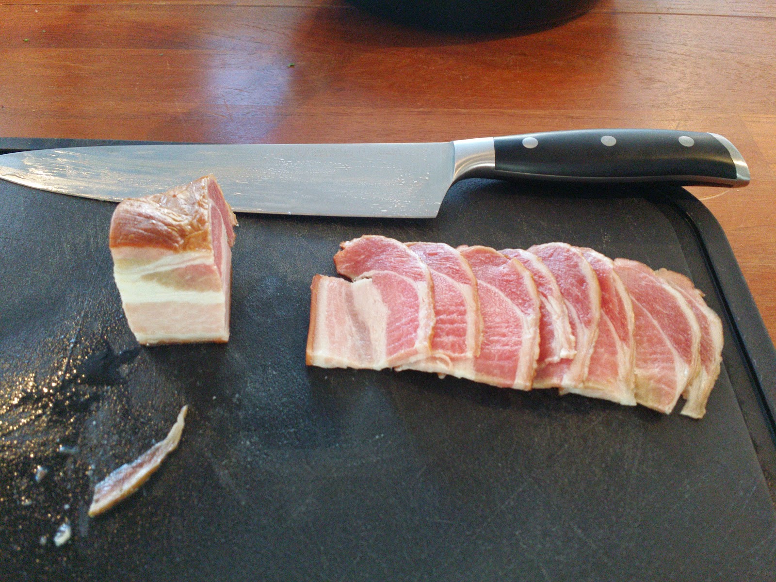 But the best thing was that I still had some home made bacon in the freezer, which I defrosted and cut up on nice little slices. I grilled them and placed them on the burgers as well. Lovely touch!